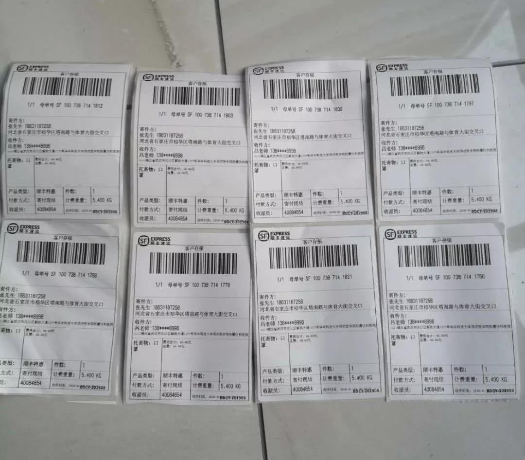 郵寄武漢協(xié)和醫(yī)院的快遞單(說(shuō)明:因順豐快遞郵寄當(dāng)時(shí)寫(xiě)手套下不了單,寫(xiě)口罩才能下單,經(jīng)快遞員與公司溝通,同意寫(xiě)口罩。)